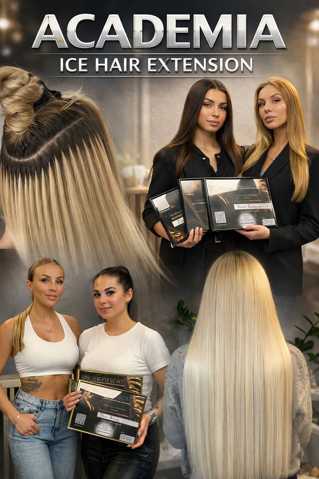 Profesjonalny kurs online Ice Extension. Praktyczna nauka przedłużania włosów: technika, schematy i gotowe rozwiązania. Dla osób od zera oraz stylistek chcących usystematyzować wiedzę i pracować profesjonalnie.